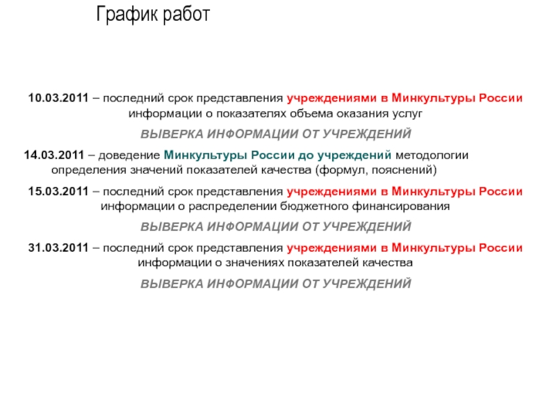 До 31.03.2011 должен быть подготовлен раздел госпрограммы Минкультуры России «сводное государственное задание»