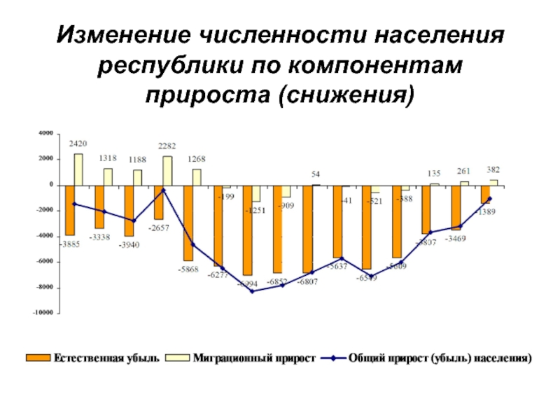 Слайд 16Изменение численности населения республики по компонентам прироста (снижения)
