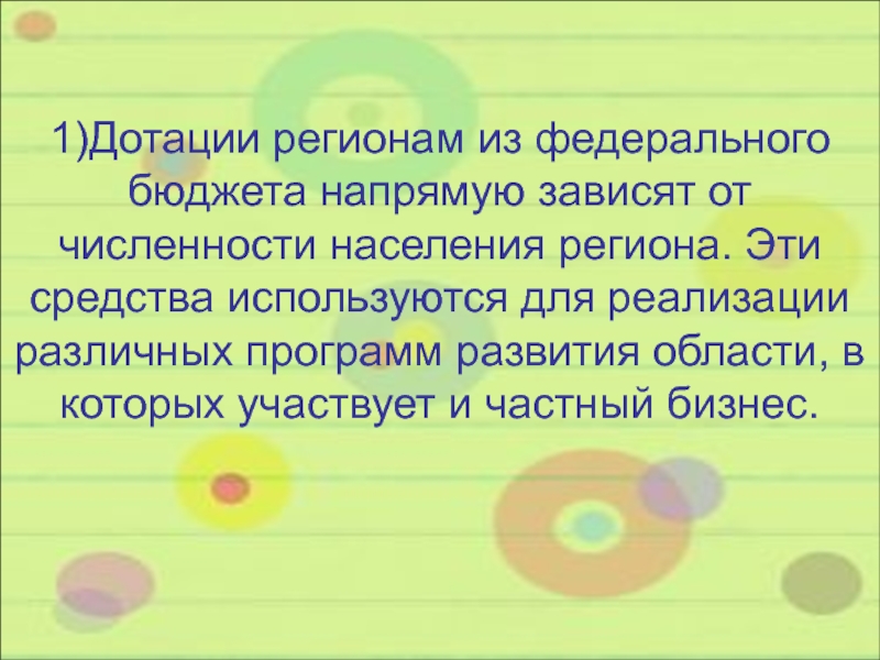 1)Дотации регионам из федерального бюджета напрямую зависят от численности населения региона.