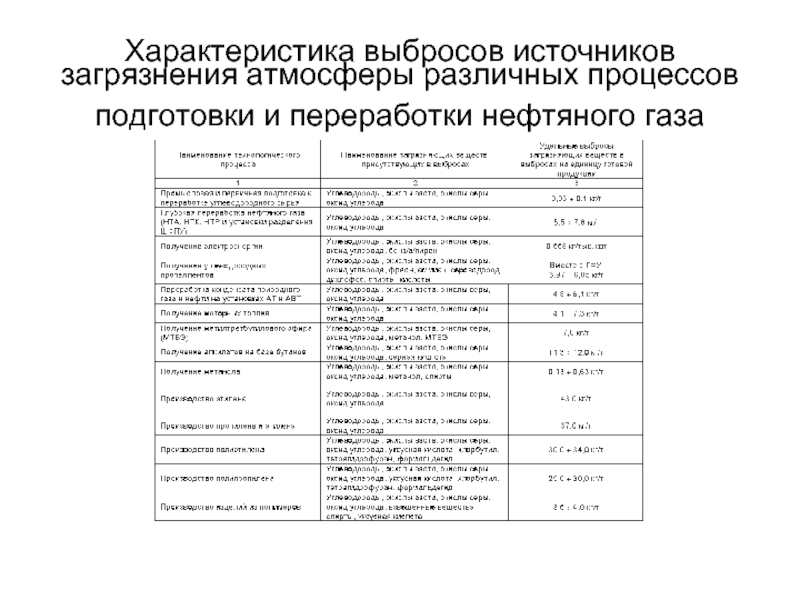 Слайд 2Характеристика выбросов источников загрязнения атмосферы различных процессов подготовки и переработки нефтяного