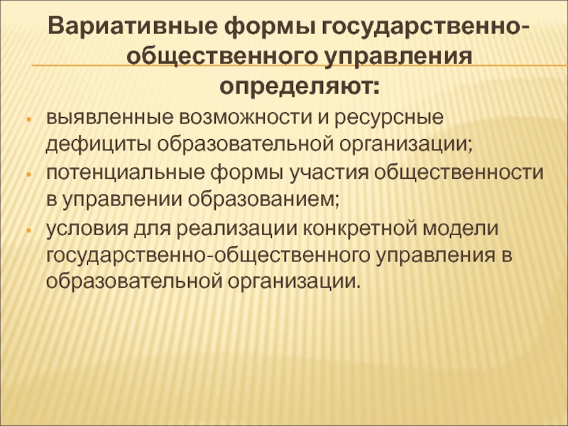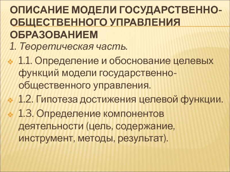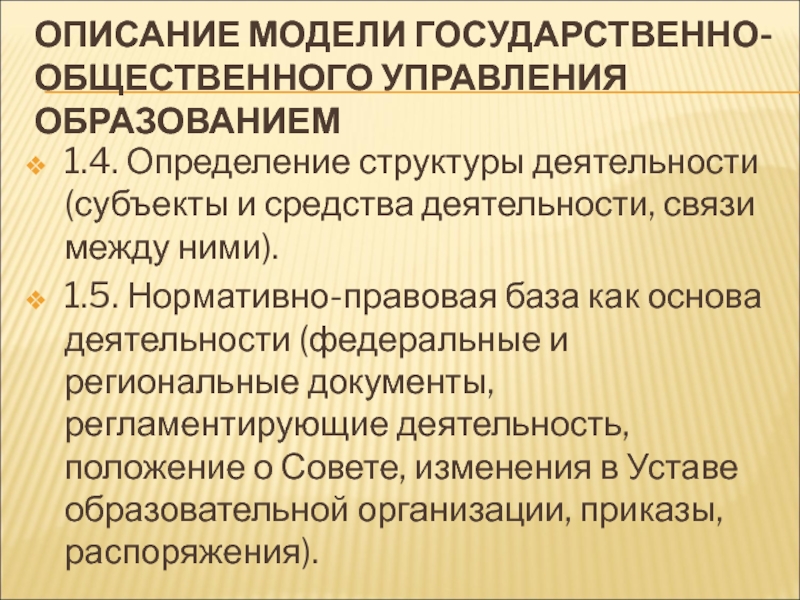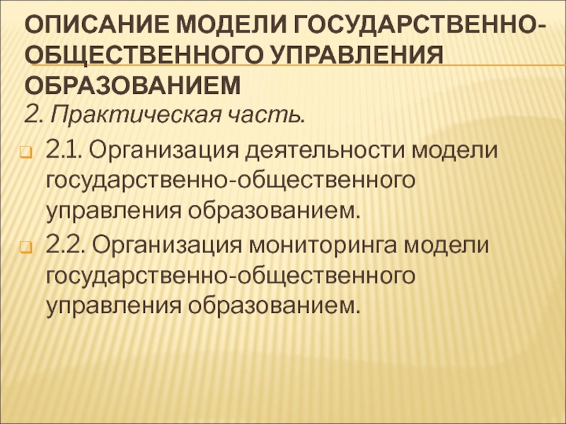 Слайд 40ОПИСАНИЕ МОДЕЛИ ГОСУДАРСТВЕННО-ОБЩЕСТВЕННОГО УПРАВЛЕНИЯ ОБРАЗОВАНИЕМ