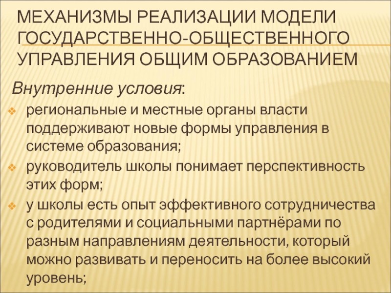Слайд 42МЕХАНИЗМЫ РЕАЛИЗАЦИИ МОДЕЛИ ГОСУДАРСТВЕННО-ОБЩЕСТВЕННОГО УПРАВЛЕНИЯ ОБЩИМ ОБРАЗОВАНИЕМ