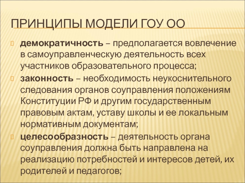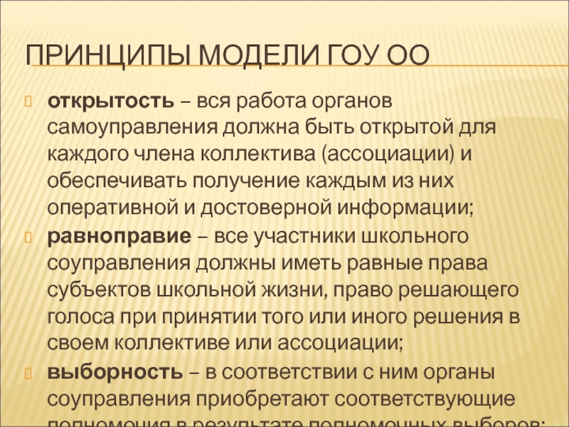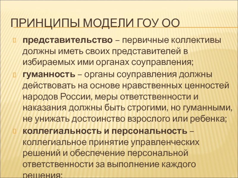Слайд 13ПРИНЦИПЫ МОДЕЛИ ГОУ ОО