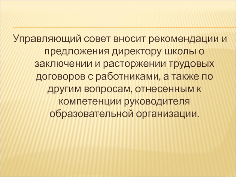 Слайд 29Управляющий совет вносит рекомендации и предложения директору школы о заключении и
