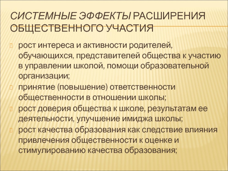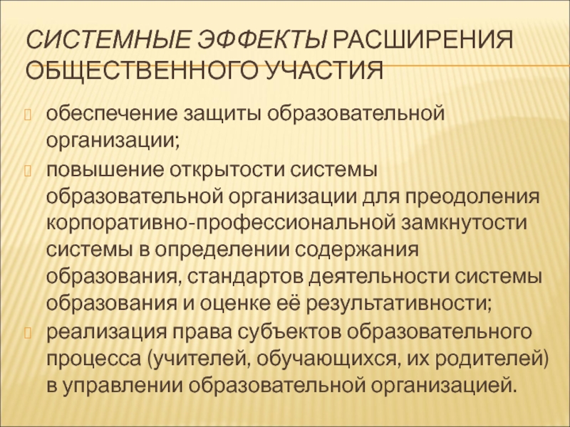 Слайд 15СИСТЕМНЫЕ ЭФФЕКТЫ РАСШИРЕНИЯ ОБЩЕСТВЕННОГО УЧАСТИЯ
