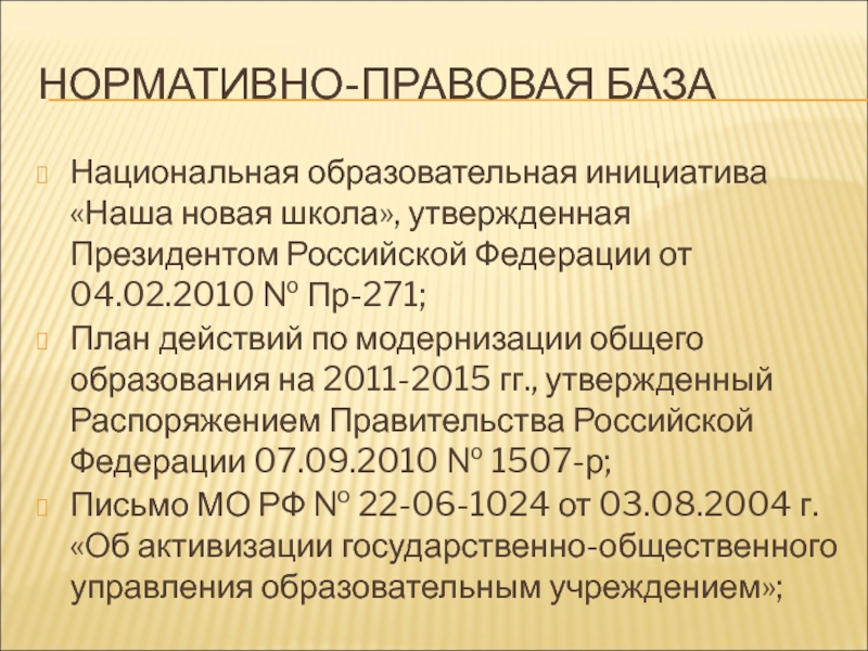 Слайд 9НОРМАТИВНО-ПРАВОВАЯ БАЗА