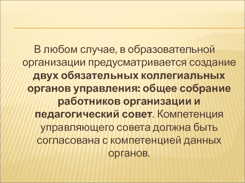 Слайд 30В любом случае, в образовательной организации предусматривается создание двух обязательных коллегиальных