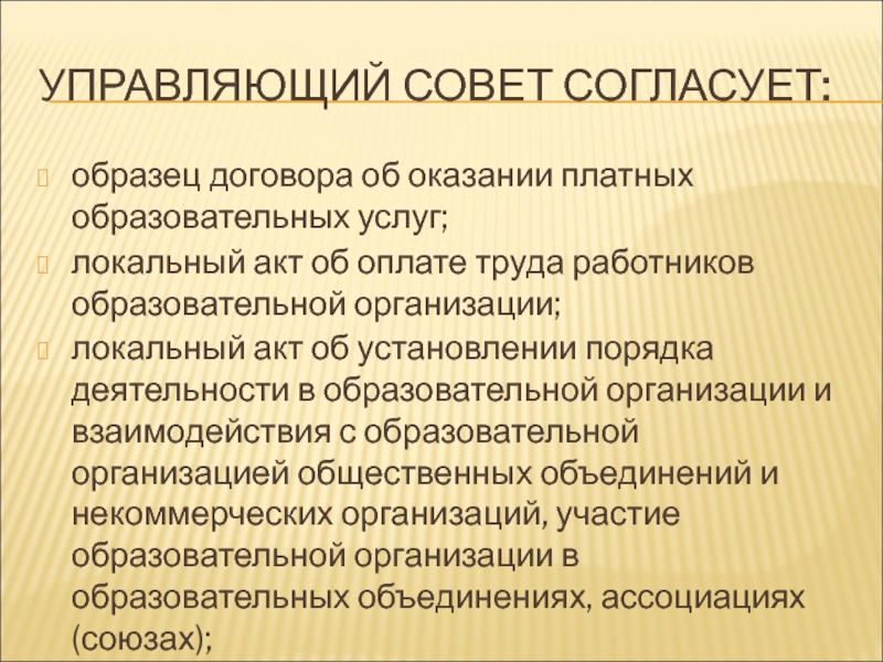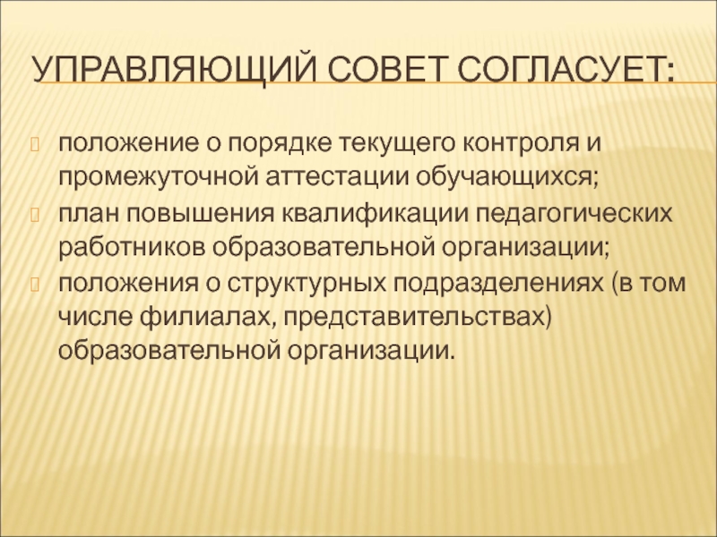 Слайд 25УПРАВЛЯЮЩИЙ СОВЕТ СОГЛАСУЕТ: