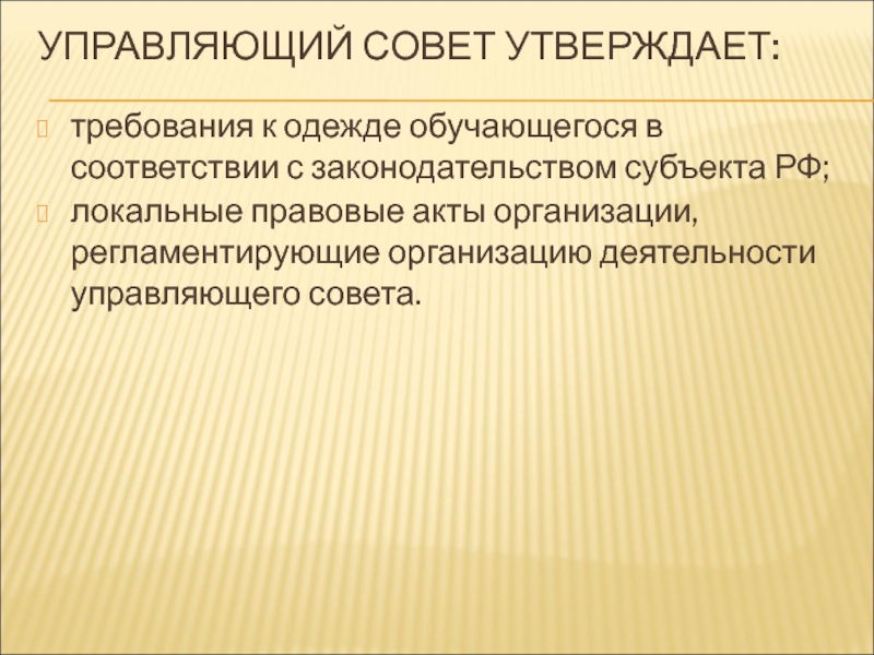 Слайд 24требования к одежде обучающегося в соответствии с законодательством субъекта РФ;