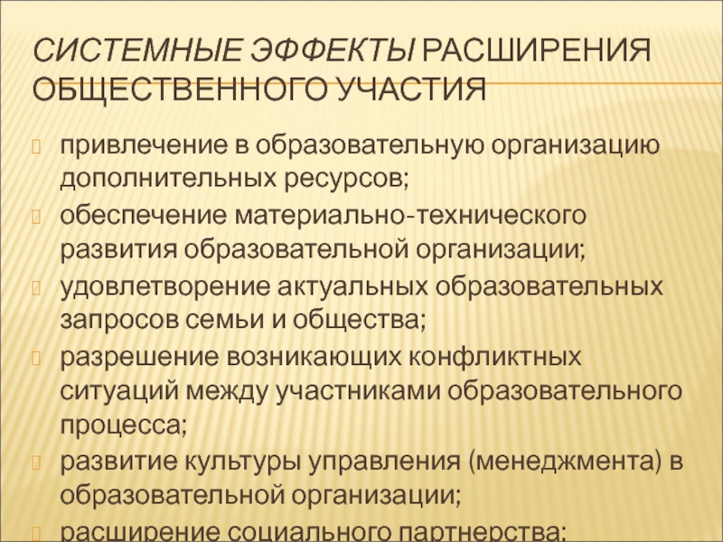 Слайд 16СИСТЕМНЫЕ ЭФФЕКТЫ РАСШИРЕНИЯ ОБЩЕСТВЕННОГО УЧАСТИЯ