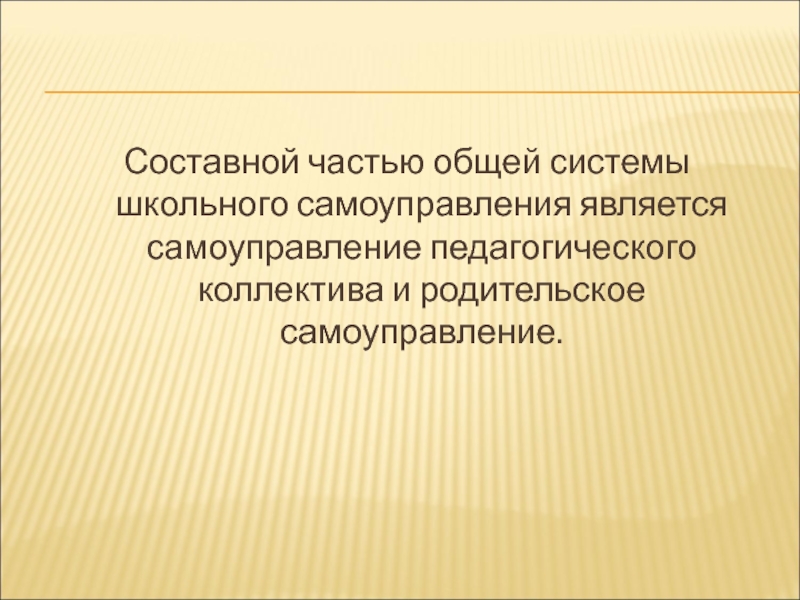 Слайд 31Составной частью общей системы школьного самоуправления является самоуправление педагогического коллектива и