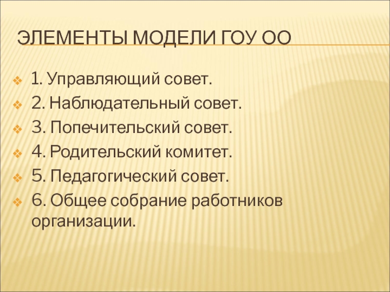 Слайд 20ЭЛЕМЕНТЫ МОДЕЛИ ГОУ ОО