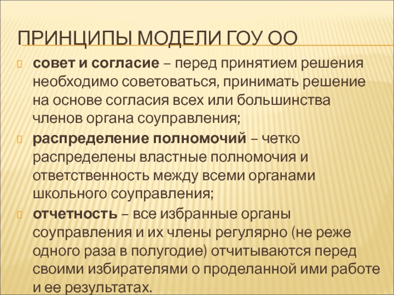 Слайд 12ПРИНЦИПЫ МОДЕЛИ ГОУ ОО