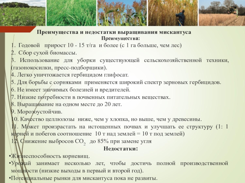Слайд 6Преимущества и недостатки выращивания мискантуса