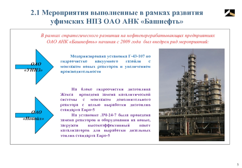 ОАО АНК «Башнефть» начиная с 2009 года был внедрен ряд мероприятий: