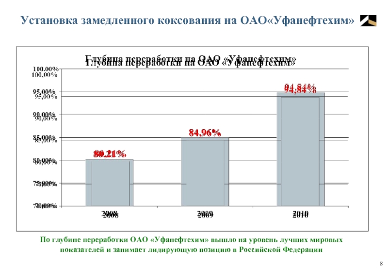 Завершено строительство установки замедленного коксования, что позволило увеличить глубину переработки на предприятии до уровня лучших мировых показателей