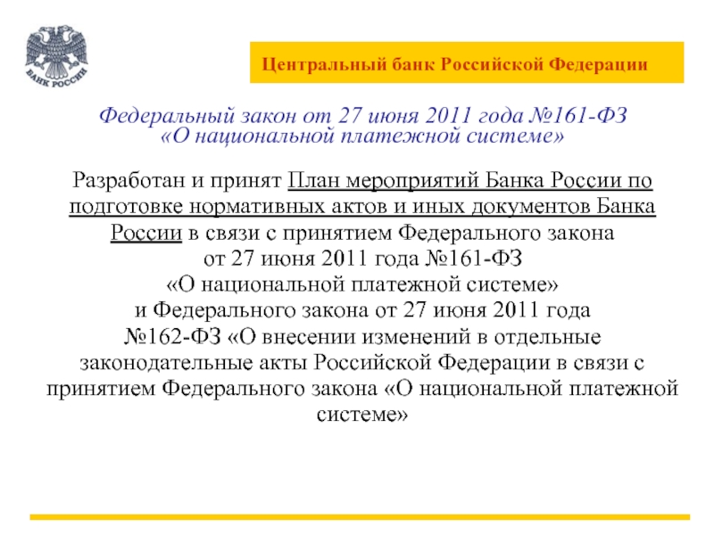 Федеральный закон от 27 июня 2011 года №161-ФЗ «О национальной платежной системе»