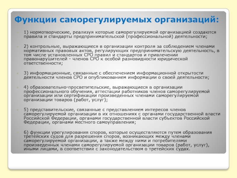 1) нормотворческие, реализуя которые саморегулируемой организацией создаются правила и