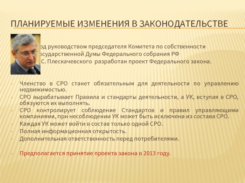 Слайд 8ПЛАНИРУЕМЫЕ ИЗМЕНЕНИЯ В ЗАКОНОДАТЕЛЬСТВЕ