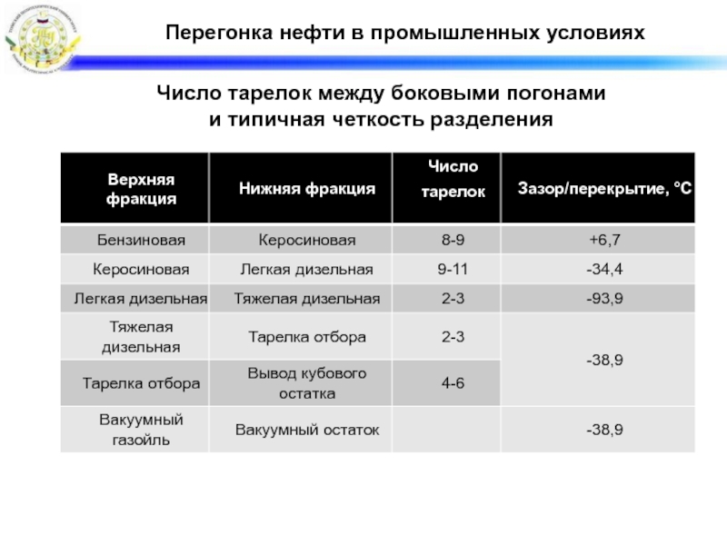 Фракции, как правило, всегда содержат в себе «хвосты», состоящие из НКК и ВКК – для повышения качества бокового продукта, приходится уменьшать его выход;