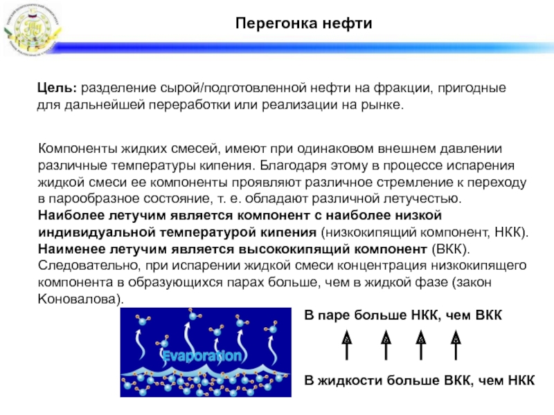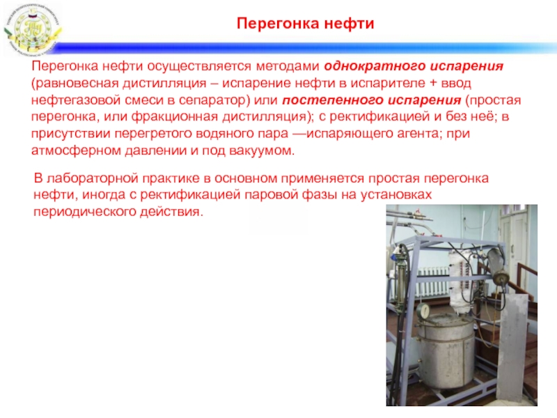 основанный на том, что при нагреве нефти образуется паровая фаза, отличающаяся по составу от жидкости.
