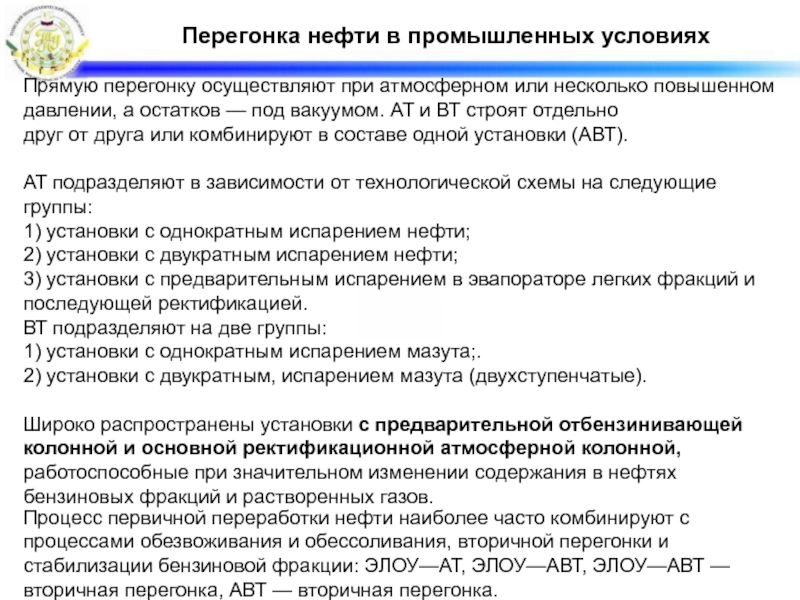 Структура НПЗ. Первичная перегонка нефти. Атмосферно-вакуумная