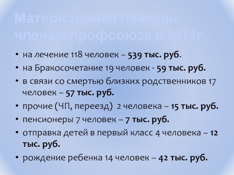 Материальная помощь членам профсоюза в 2013г