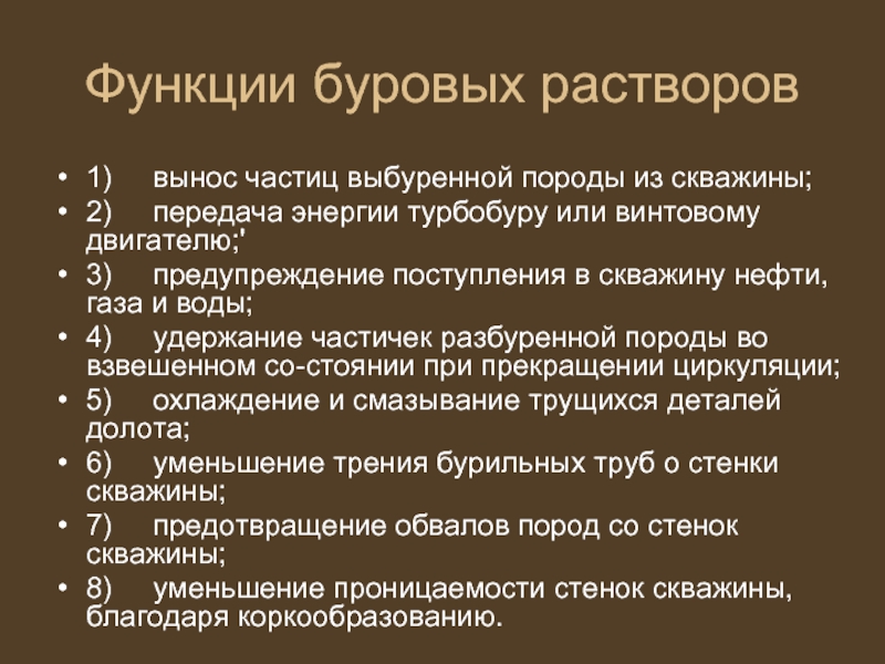 4) удержание частичек разбуренной породы во взвешенном состоянии при прекращении циркуляции;