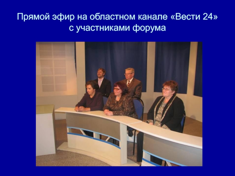 Слайд 8Прямой эфир на областном канале «Вести 24» с участниками форума