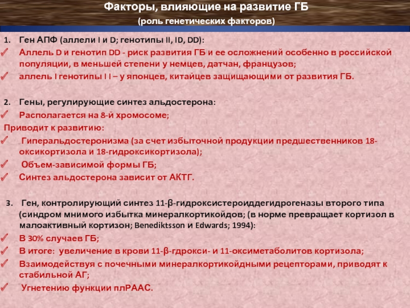 Слайд 8 Факторы, влияющие на развитие ГБ