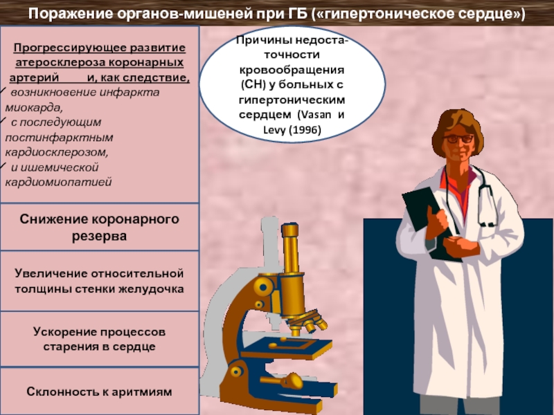 Причины недоста-точности кровообращения (СН) у больных с гипертоническим сердцем (Vasan и Levy (1996)