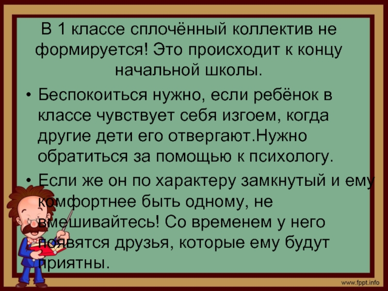 Беспокоиться нужно, если ребёнок в классе чувствует себя изгоем, когда другие дети его отвергают.Нужно обратиться за помощью к психологу.