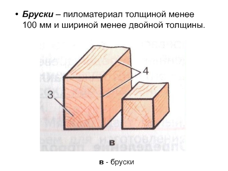 Слайд 7Бруски – пиломатериал толщиной менее 100 мм