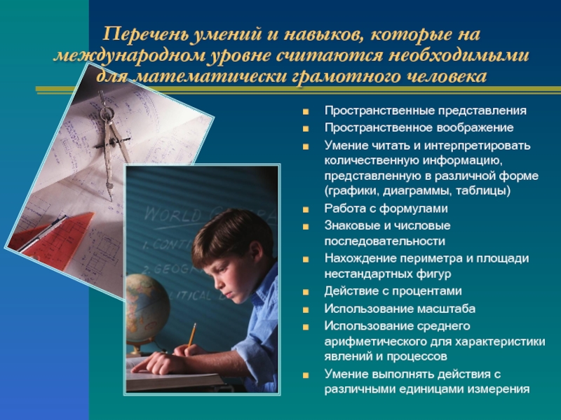 Математическая грамотность – способность человека определять и понимать роль математики в мире, в котором он живет, высказывать хорошо обоснованные математические суждения и использовать математику так, чтобы удовлетворять в настоящем и будущем потребности, присущие созидательному, заинтересованному и мыслящему гражданину
