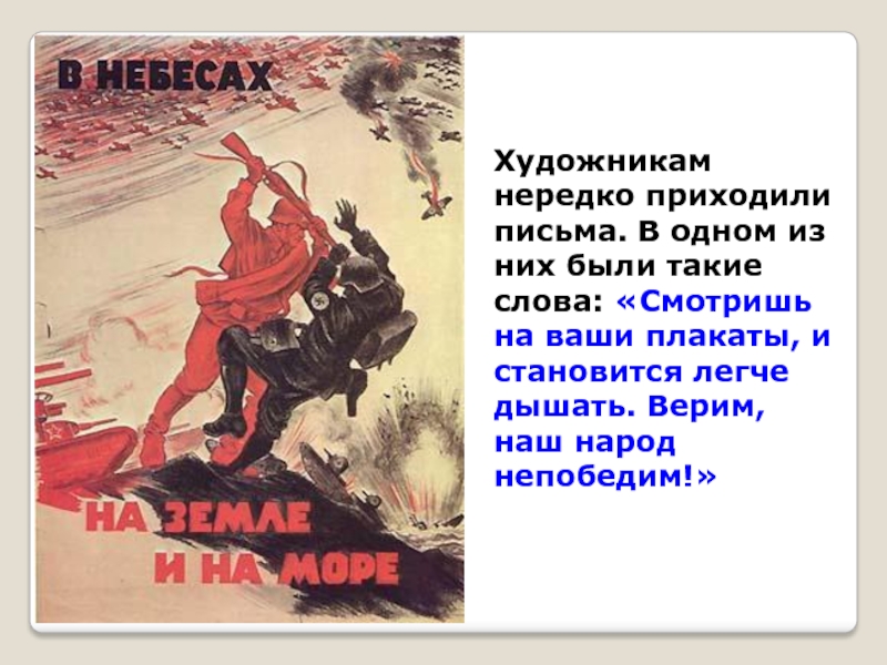 Слайд 41Плакаты приобрели необычайную популярность. Их содержание пересказывалось из уст в уста,