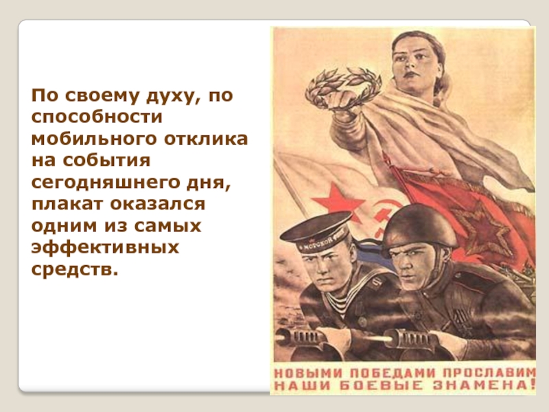 Слайд 8Плакат Великой Отечественной войны — одно из самых запоминающихся и ярких