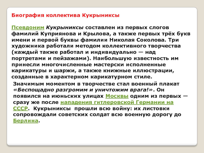 Слайд 11Биография коллектива Кукрыниксы