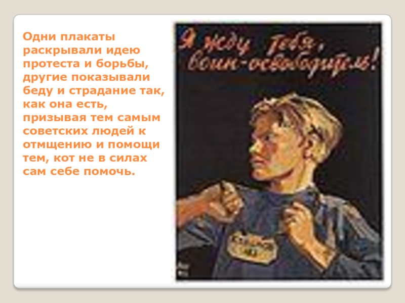 Слайд 31Одни плакаты раскрывали идею протеста и борьбы, другие показывали беду и