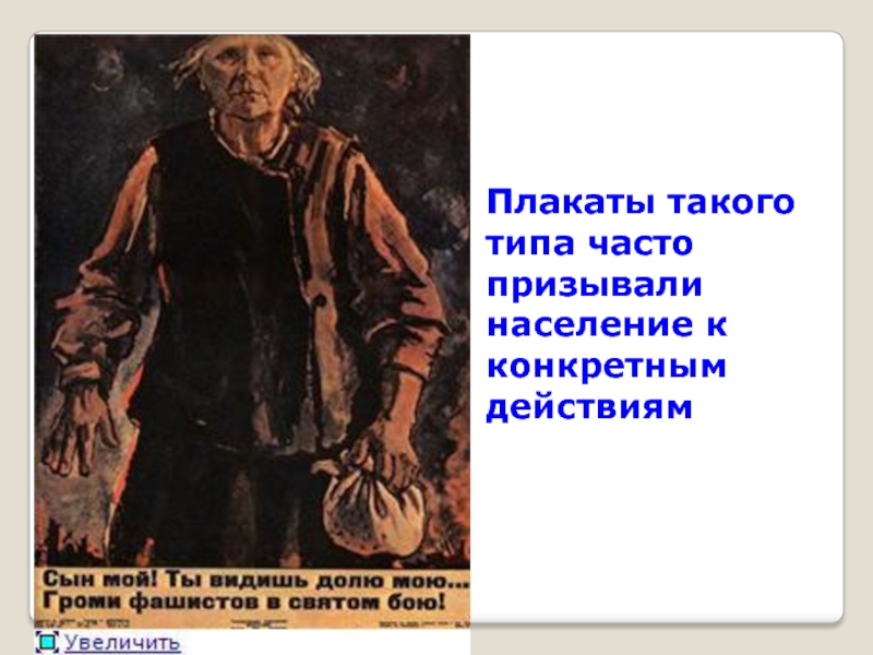 Слайд 18Плакаты такого типа часто призывали население к конкретным действиям