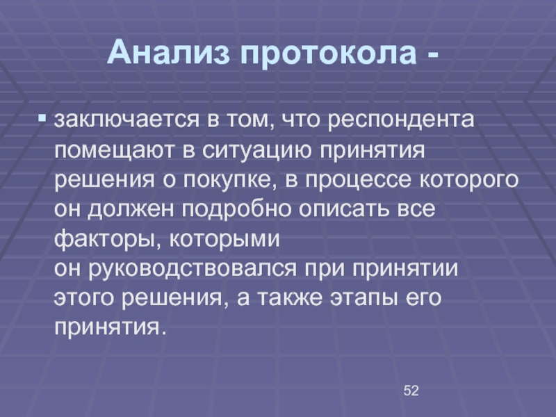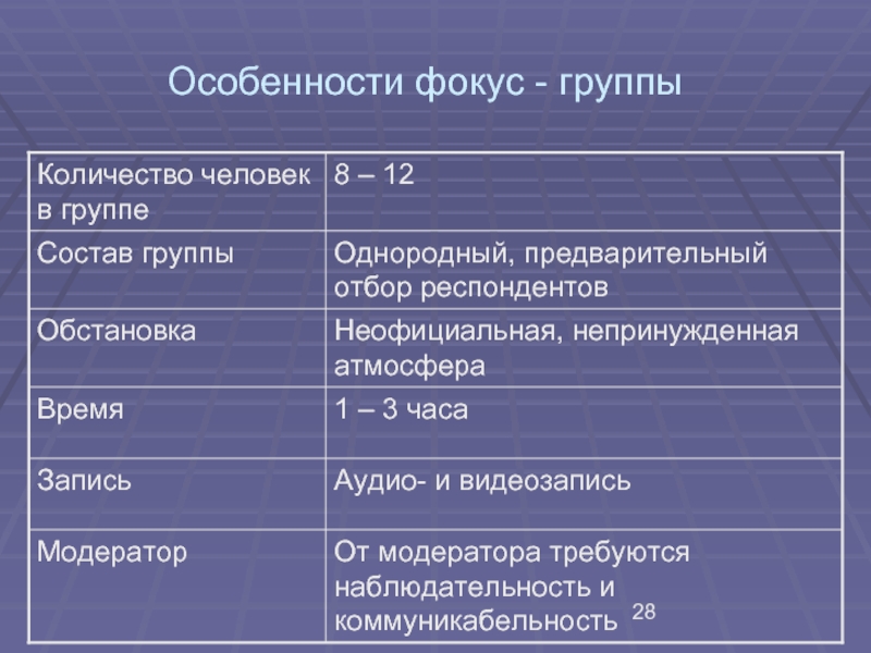 для получения информации о поведении потребителей (определяются критерии выбора, частота и объем потребления марок изучаемой товарной группы).