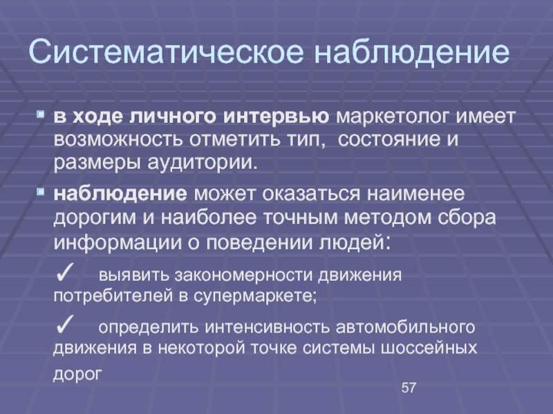 Основные методы количественных исследований — это различные виды опросов и аудит розничной торговли (retail audit).