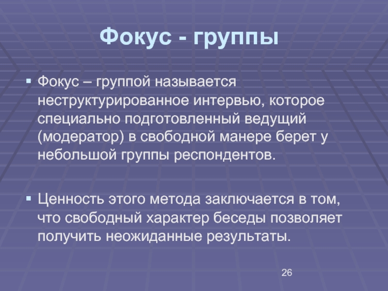 Цель зондирующих исследований – выработать проверяемые гипотезы.