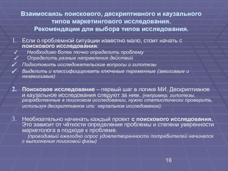 Слайд 5Поисковые (зондирующие) исследования – полезны на первом этапе исследовательского процесса, когда