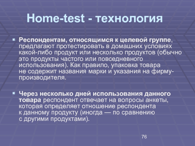 Преимуществом home-теста является то, что тестирование товаров происходит в тех же условиях, в которых они используются обычно.