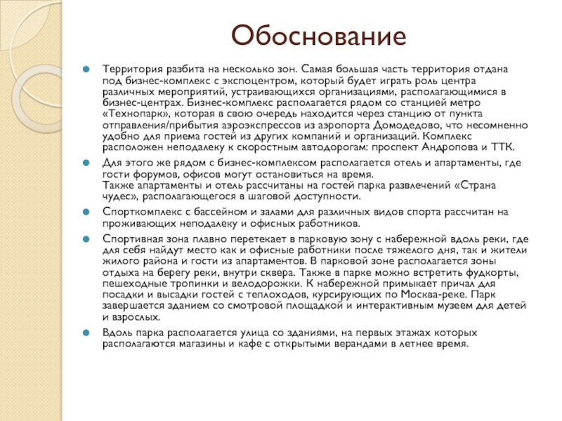 Территория разбита на несколько зон. Самая большая часть территория отдана под