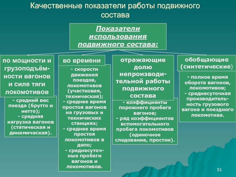 На основе объёмных показателей определяется качественные показатели работы подвижного состава.