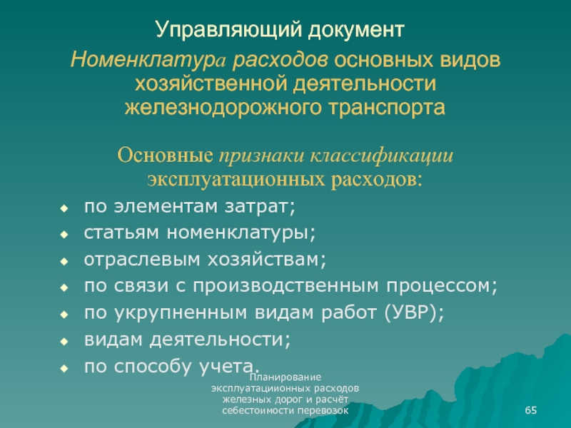 Номенклатура расходов основных видов хозяйственной деятельности железнодорожного транспорта