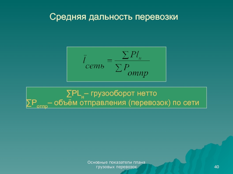 ∑PLбр – грузооборот брутто – полная работа транспорта, учитывающая работу по передвижению груза вместе с тарой подвижного состава