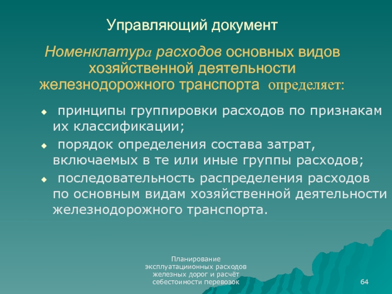 Номенклатура расходов основных видов хозяйственной деятельности железнодорожного транспорта определяет: