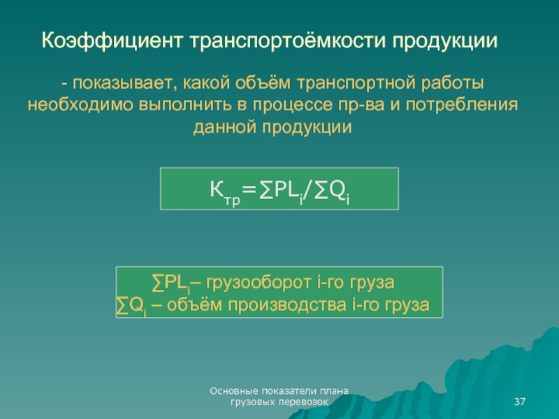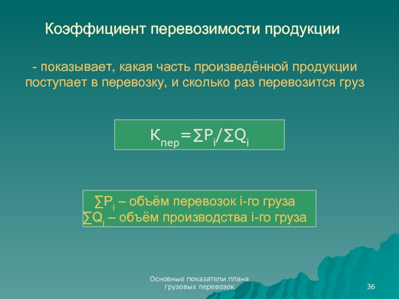- показывает, какая часть произведённой продукции поступает в перевозку, и сколько раз перевозится груз